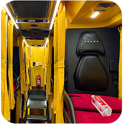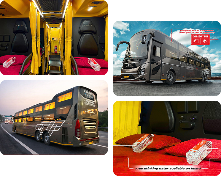 Now, once a passenger boards the bus he will be surprised by the inner comfort of the bus. The buses have all the latest amenities like WiFi, charging point, water bottle and central TV. The seats are really very comfortable and create a feeling of a cosy bedroom. We have almost all the luxury brand buses in our fleet. Our luxurious fleet includes Mercedes Benz Multi-axle buses, Volvo Multi-axle buses, and Scania Multi-axle comfort buses. These buses help in smoothening the journey. Our motto to change the perception of bus travel makes us enhance our luxury levels regularly.
